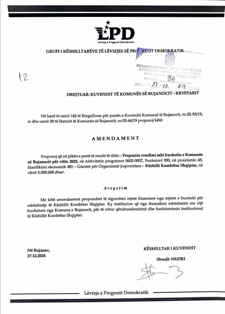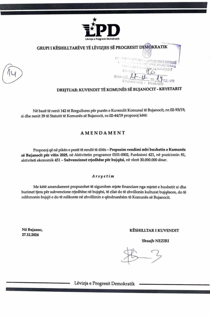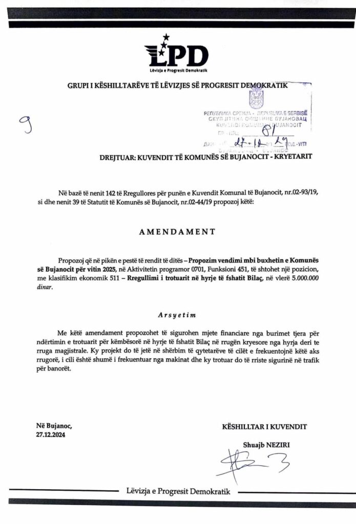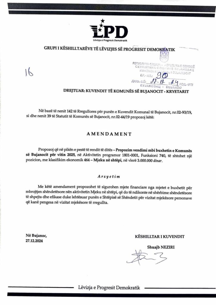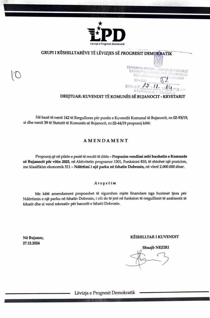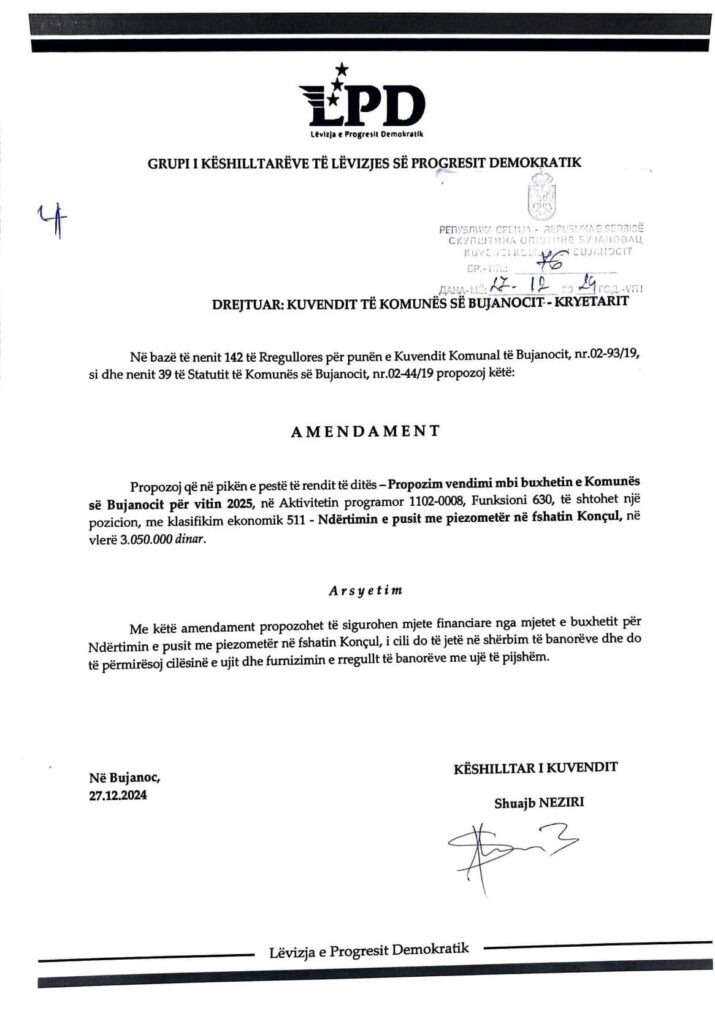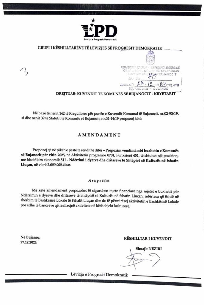 Grupi i këshilltarëve të LPD-së, ka propozuar 22 amendamente të cilat kanë të bëjnë me prioritete të rëndësishme ndaj qytetarëve të cilat përfshijnë fusha të ndryshme e vendbanime të rëndësishme shqiptare.