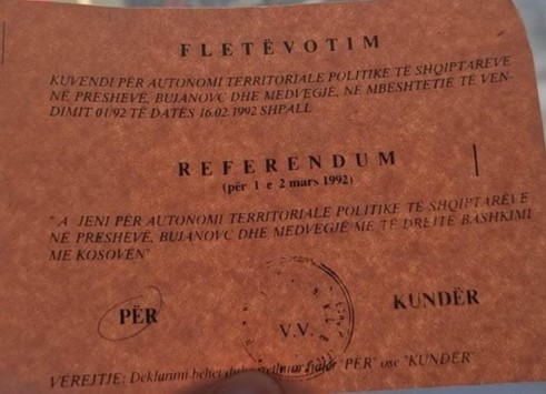 “A JENI PËR AUTONOMI TERRITORIALE POLITIKE TË SHQIPTARËVE NË PRESHEVË, BUJANOVC DHE MEDVEGJË ME TË DREJTË BASHKIMI ME KOSOVËN”